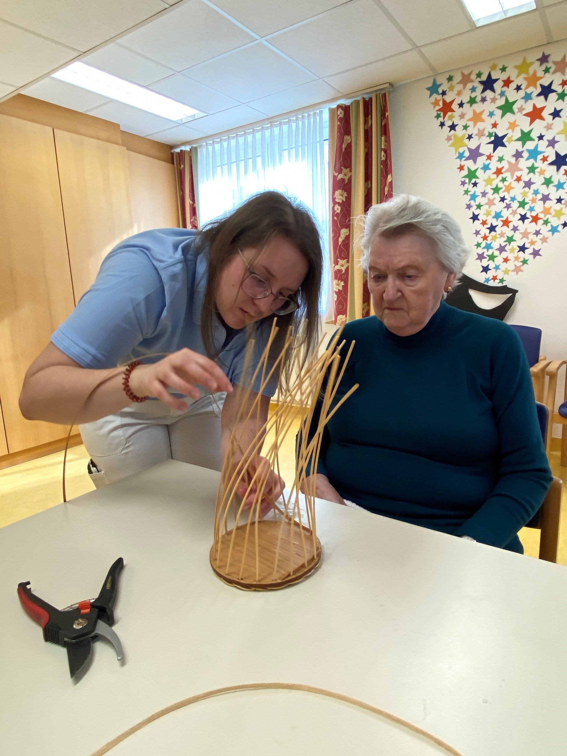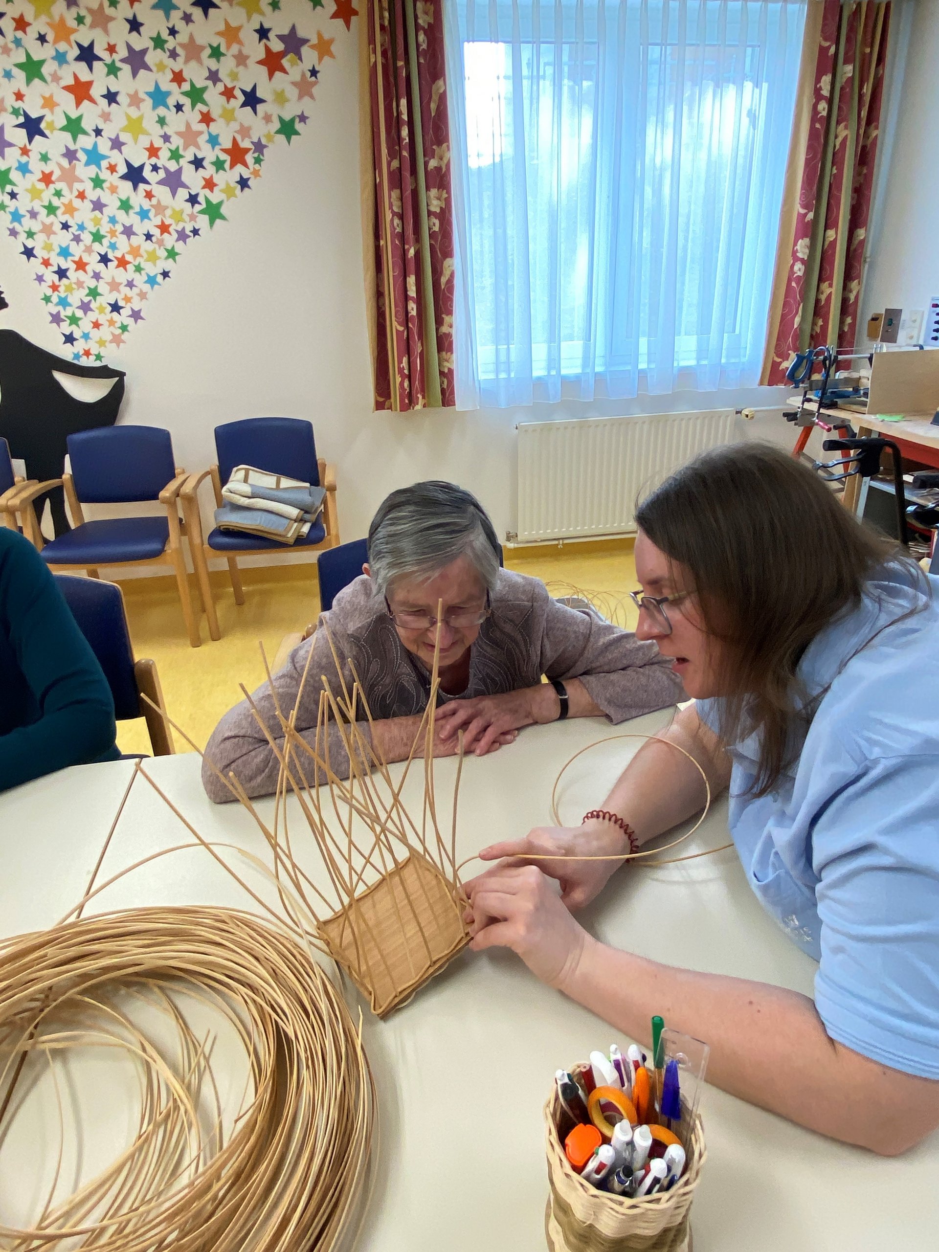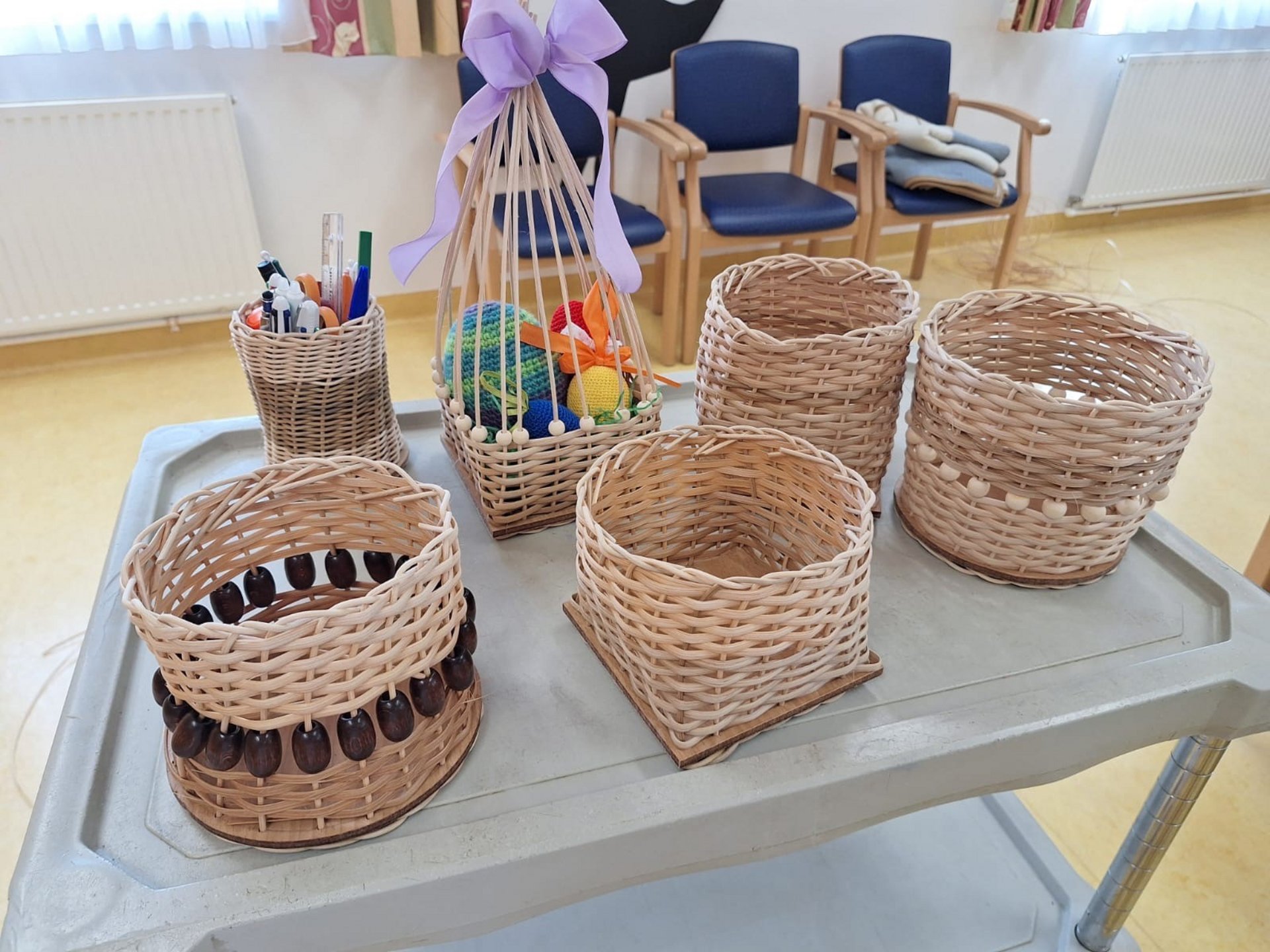 Gemeinsam mit unseren Bewohnerinnen und Bewohner haben wir Körbe aus Peddigrohr geflochten.